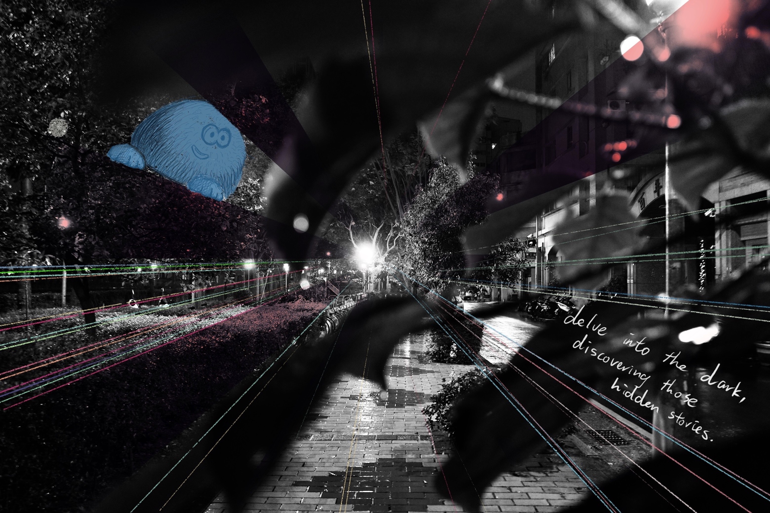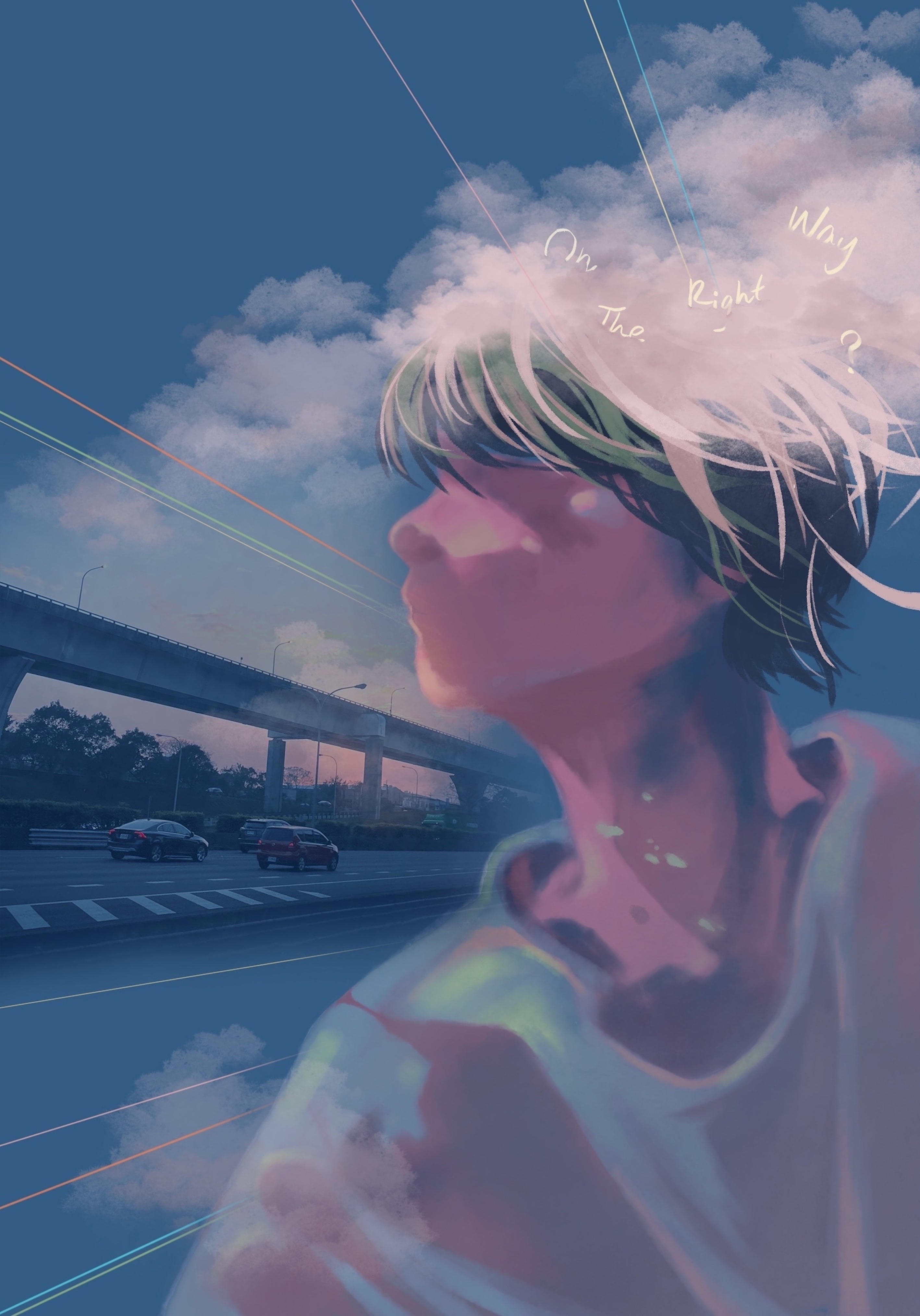 To what extent can the different compositions of landscape photography and illustrations express emotion and self-exploration? I merged digital drawings and photos that I took. Since the arrangements of the photographs and illustrations can be in any form of combination, the topic of combining digital art with photographs deeply sparked my curiosity.