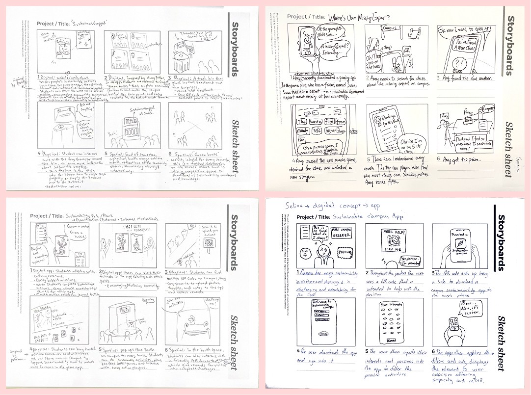 Our ideation process began with creating individual storyboards depicting the potential user experience and our personal visions for the project.